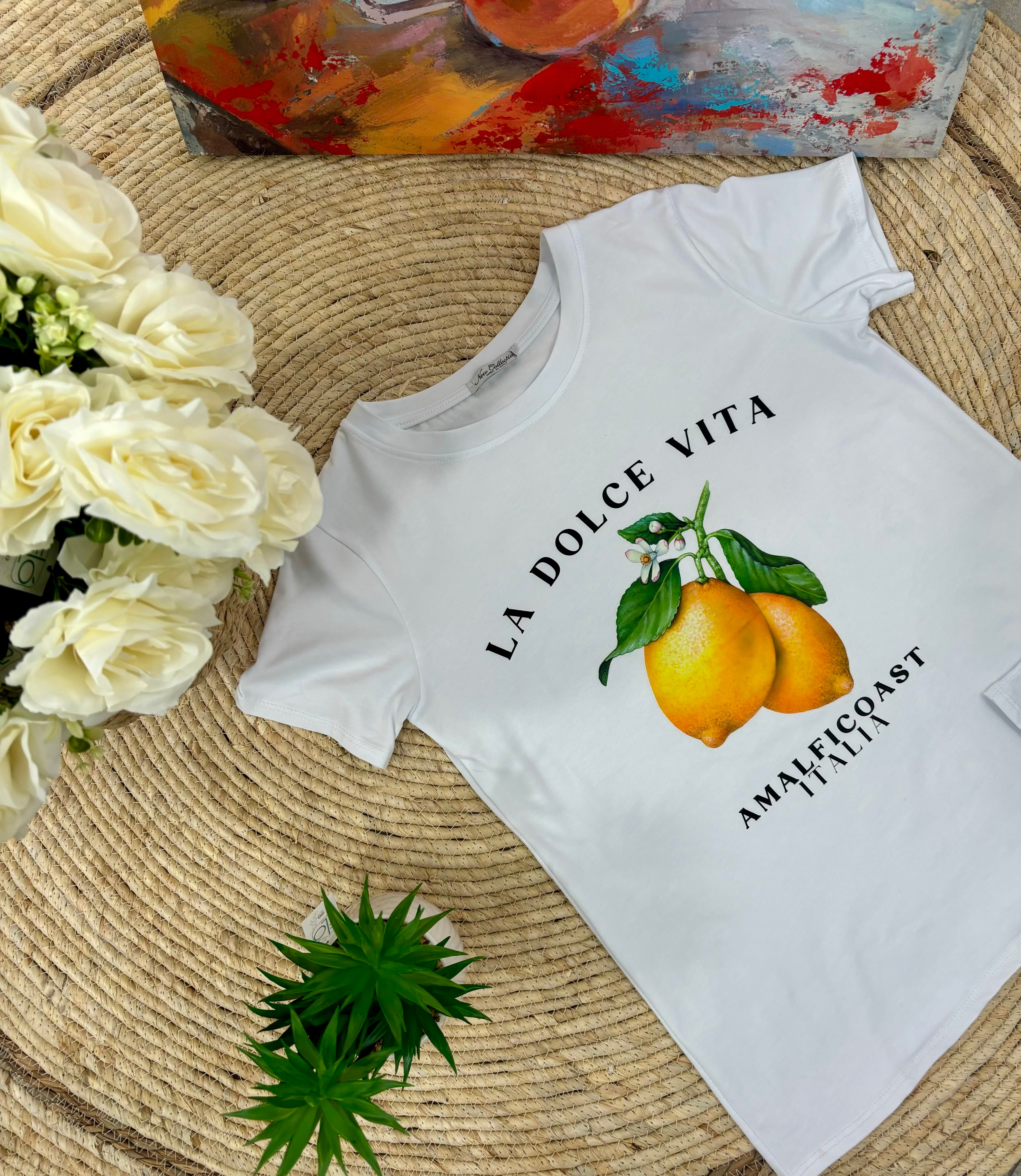 T-Shirt Maniche Corte Due Limoni con Scritta “La Dolce Vita”
